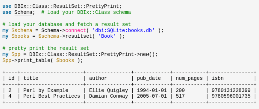 $ cpanm DBIx::Class::ResultSet::PrettyPrint